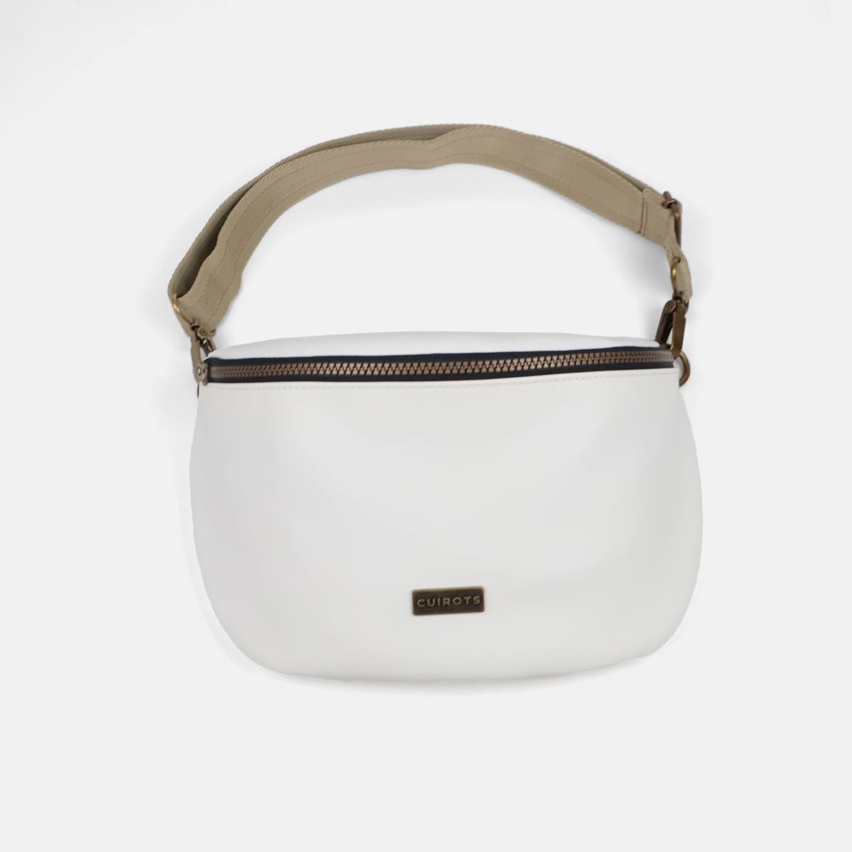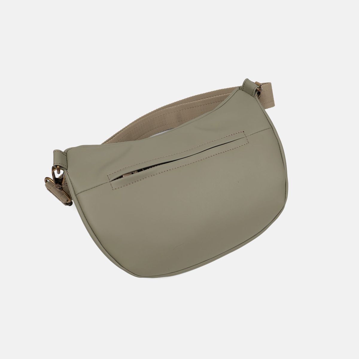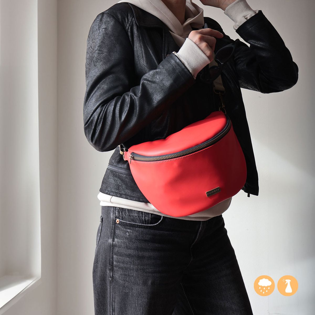 Bolsa transversal de tamanho médio com design de pochete. Feita de silicone 100% vegano, um material muito leve, macio, resistente a manchas e fácil de limpar. Resistente à água.