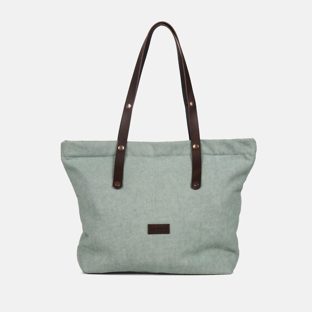 Bolsa de ombro grande estilo shopper com ampla capacidade. Design com alças grossas em algodão com efeito lavado e couro.