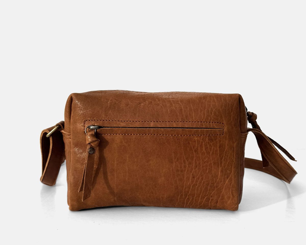 Pequena bolsa transversal da coleção Austrália, feita de couro texturizado natural para um estilo autêntico e praticidade para o uso diário.