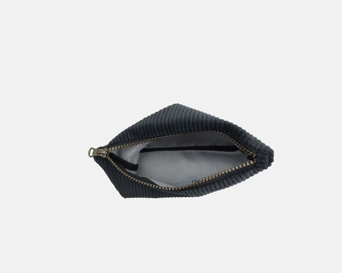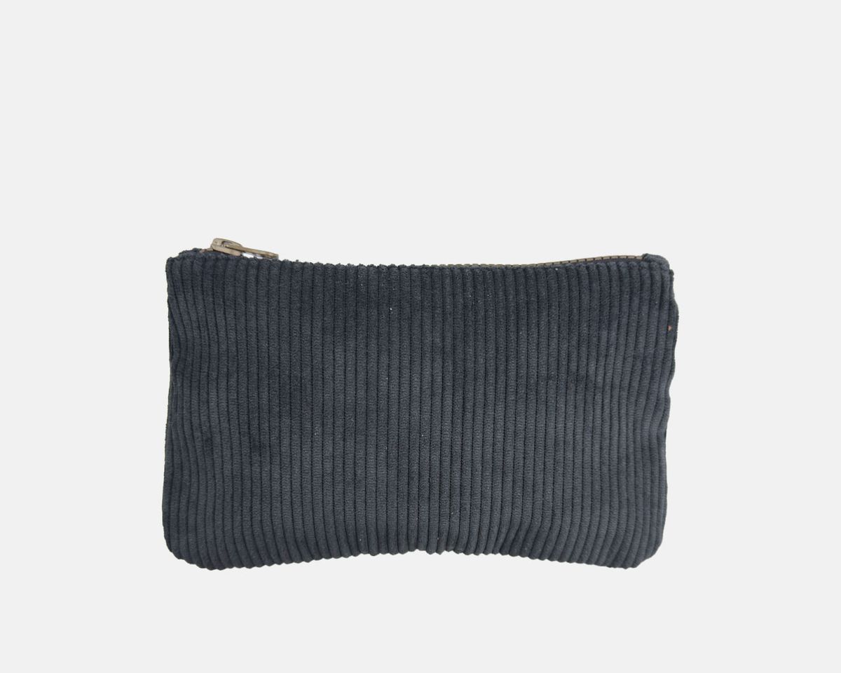 Bolsa grande feita de tecido de veludo cotelê muito leve, fechada com zíper.