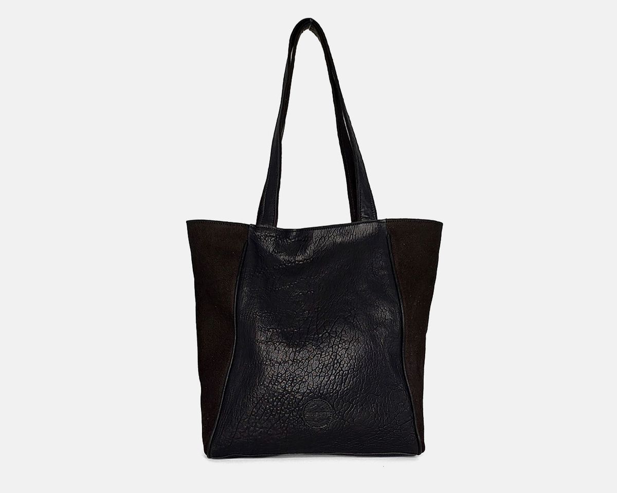 Bolsa shopper grande combinada com couro na frente e atrás e linho nas laterais.
