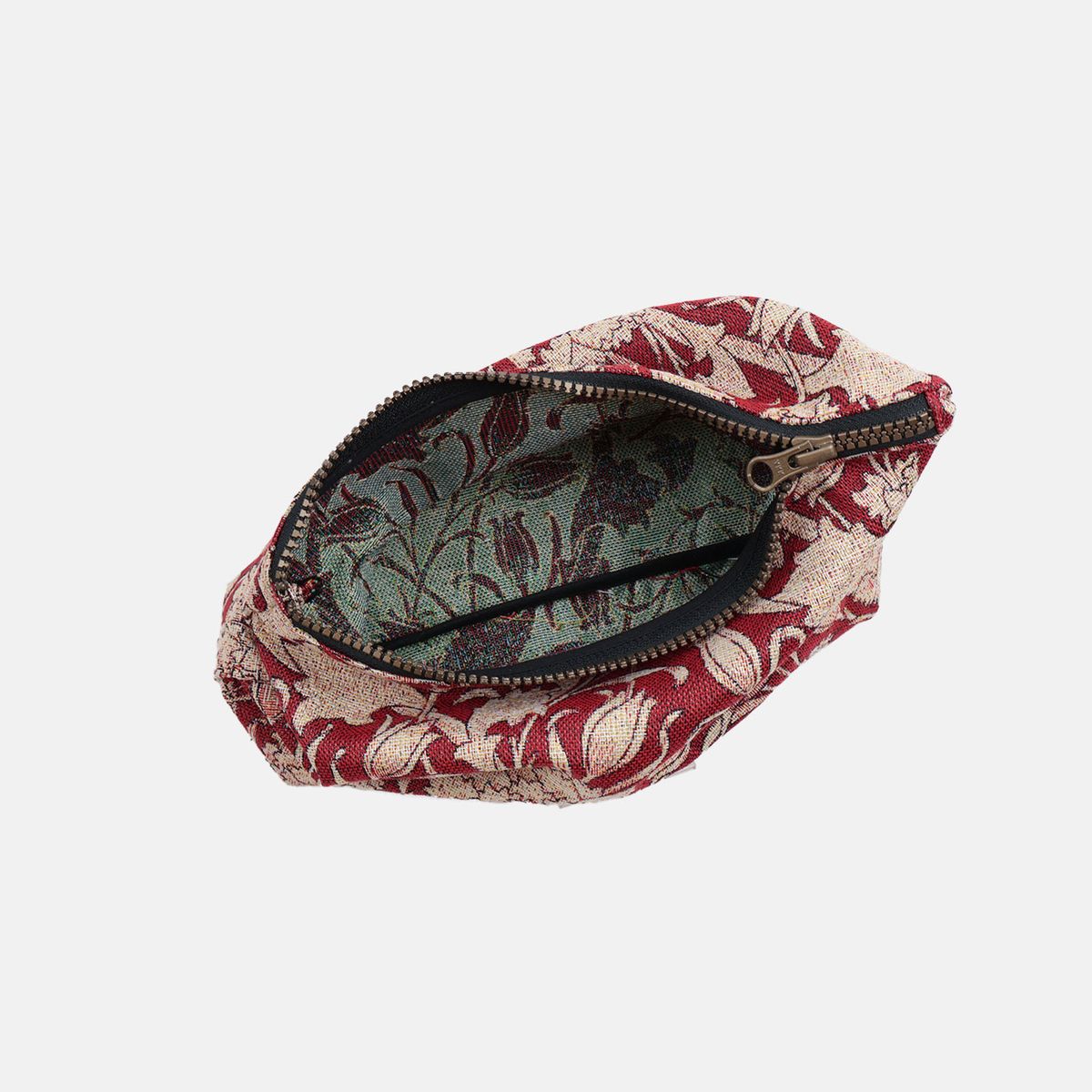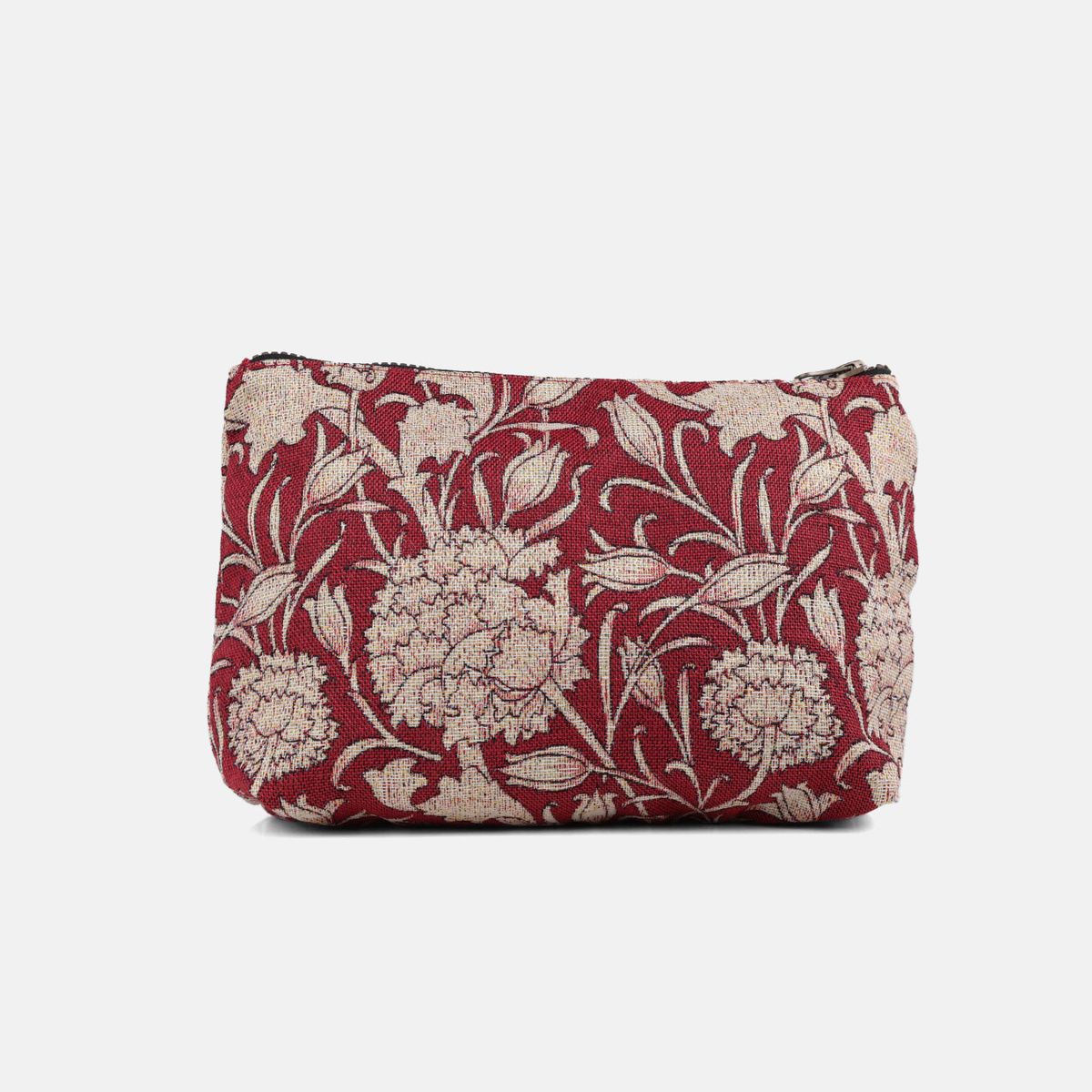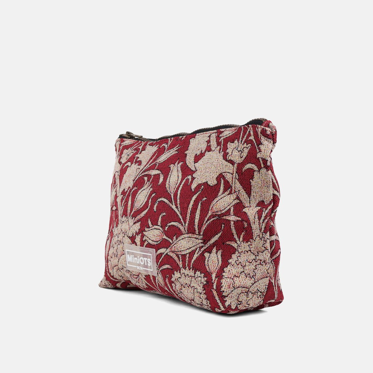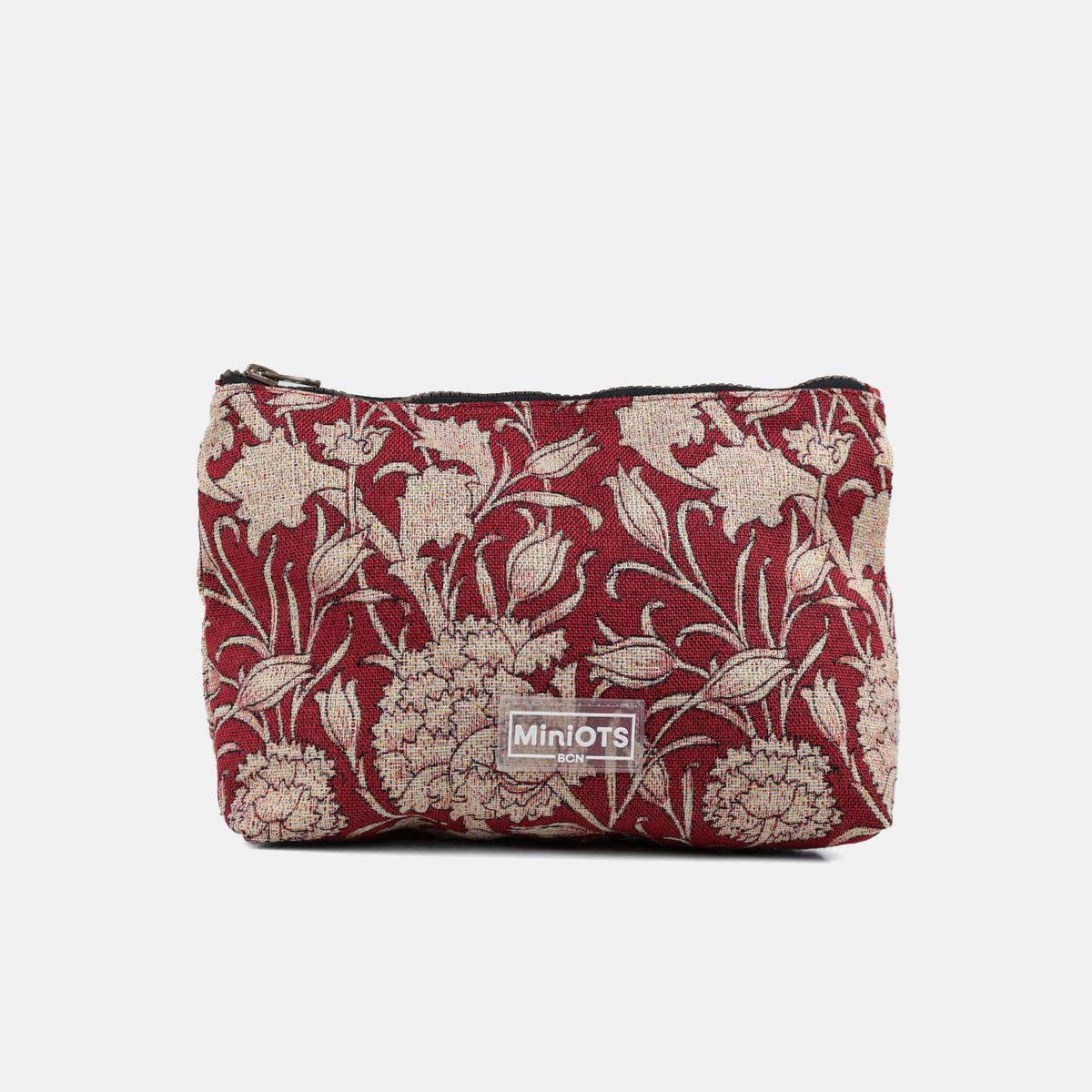 Nécessaire grande com fecho de zíper. Confeccionada em tecido jacquard em tons de bordô e bege.